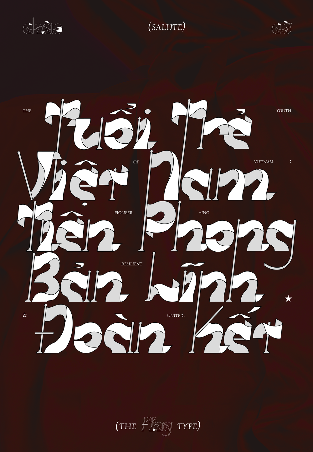 Introducing "Chào Cờ" (Salute to the Flag), a typeface design project inspired by the dynamic Vietnamese flag. This versatile typeface embodies the flag's flexibility, movement, and vernacular essence, resonating with the audience. By combining the flag's visual flow and curves with its nature of formality and nobility, "Chào Cờ" embodies a blend of tradition and modernity, and instill a sense of pride and cultural identity.