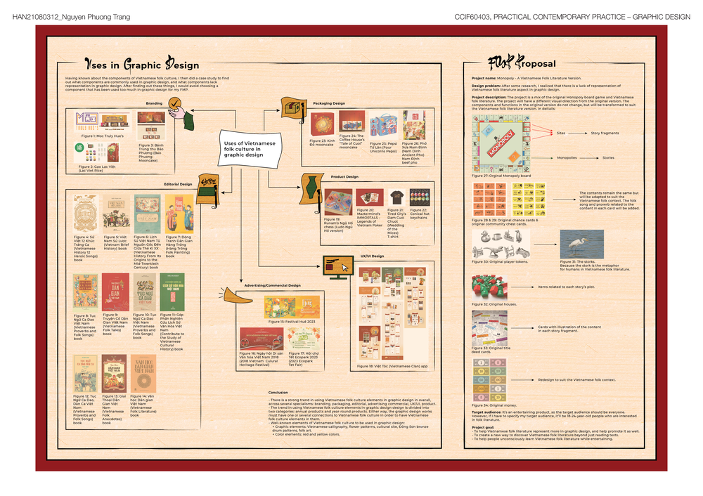 | The main objective of the project is to help people of ages learn Vietnamese folk literature through playing a Monopoly-inspired board game. The project is a mix of the original Monopoly board game and Vietnamese folk literature. The components and functions in the original version do not change but will be transformed to suit the Vietnamese folk context. |
